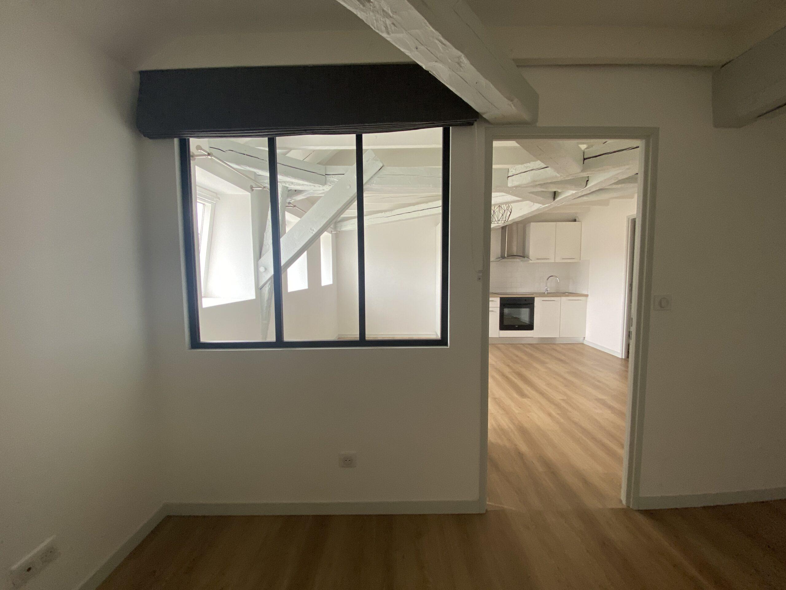 Situé en centre ville de Poitiers, proche de toutes les commodités, cet appartement spacieux offre un lieu de vie confortable avec poutres apparentes au deuxième étage d’un immeuble ancien avec cachet.