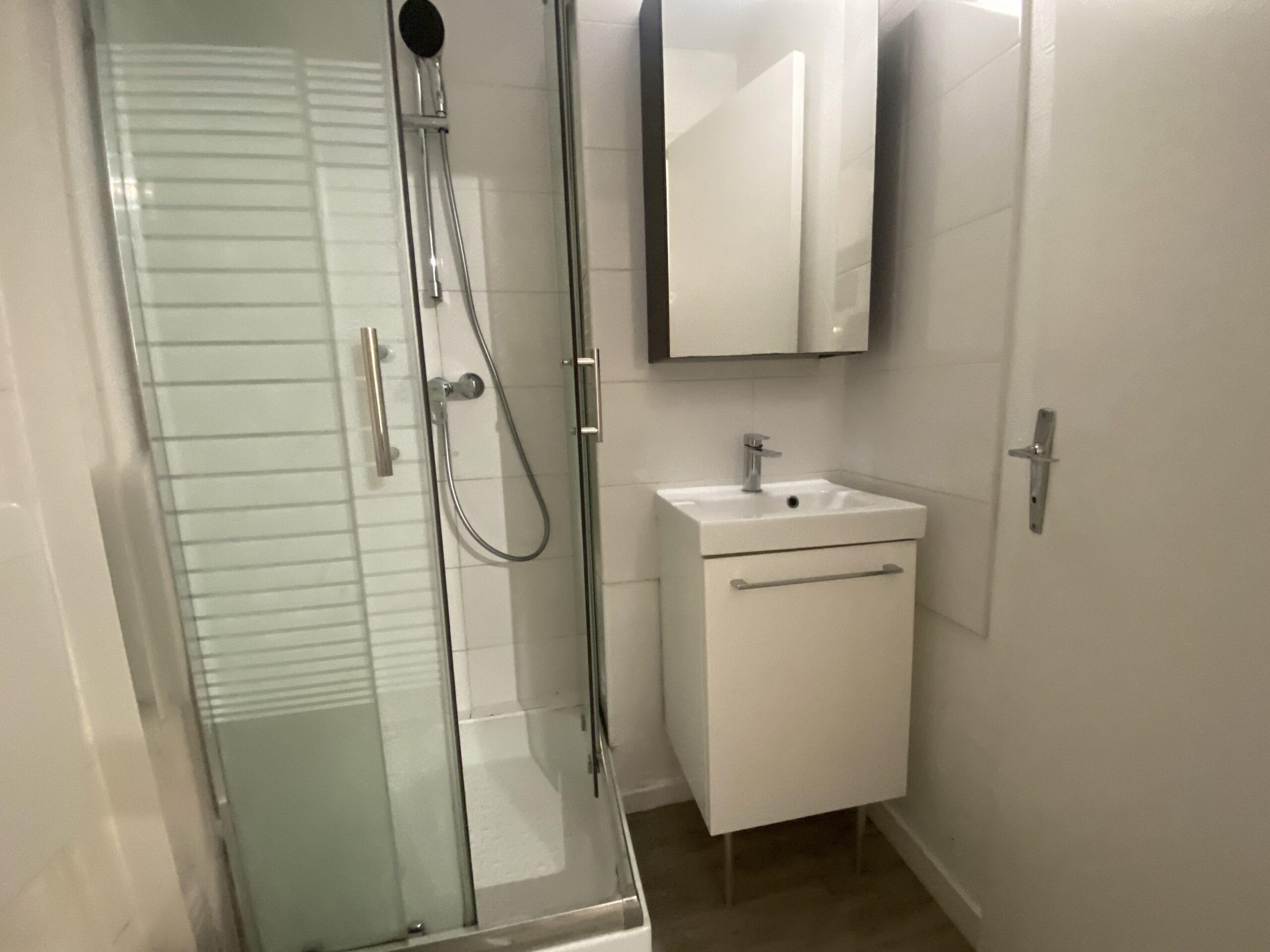 • une salle d’eau avec WC, meuble vasque, miroir et rangement